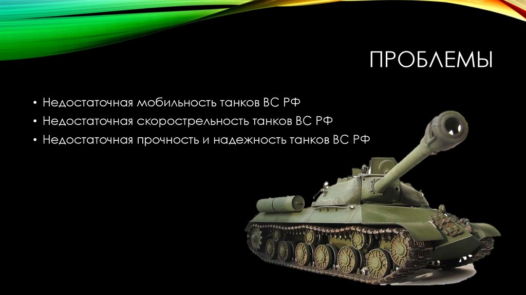 ПРОБЛЕМЫ• Недостаточная мобильность танков ВС РФ