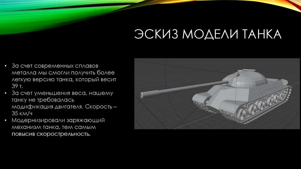 ЭСКИЗ МОДЕЛИ ТАНКА• За счет современных сплавов