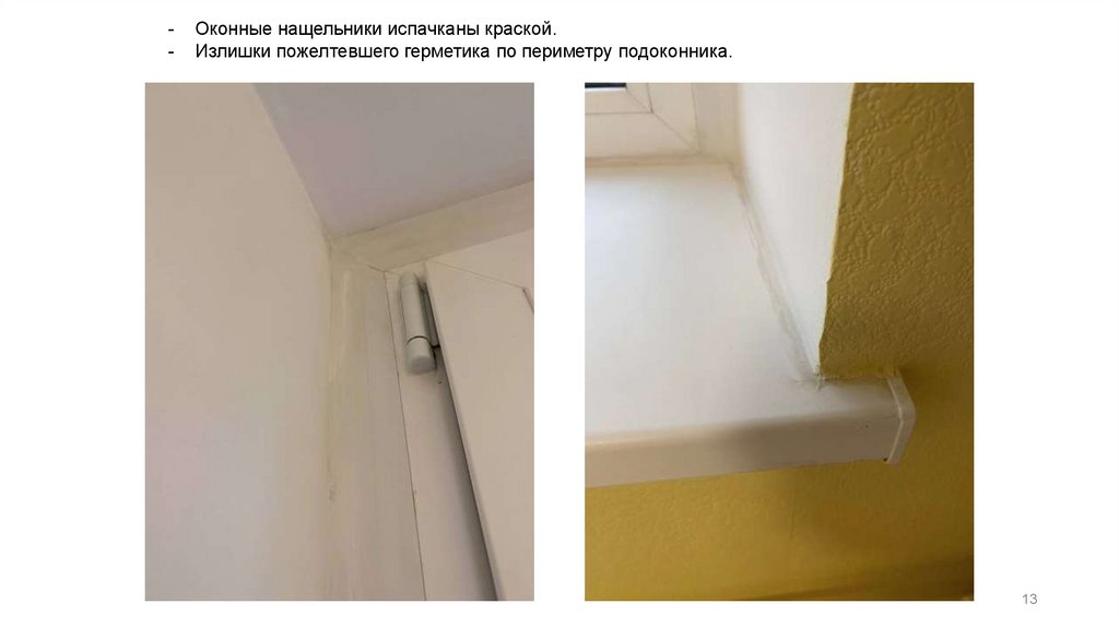 -Оконные нащельники испачканы краской.