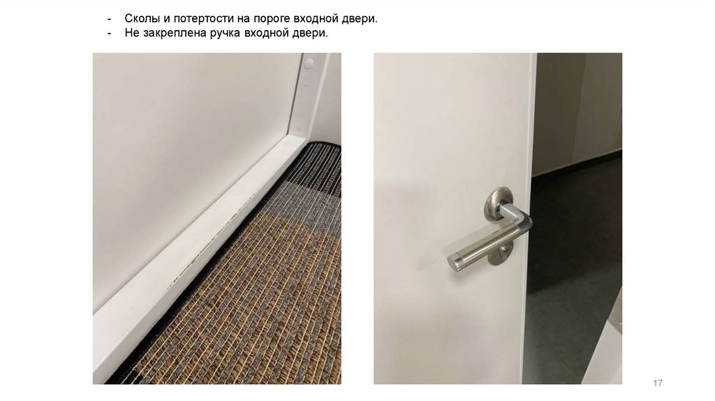 -Сколы и потертости на пороге входной двери.