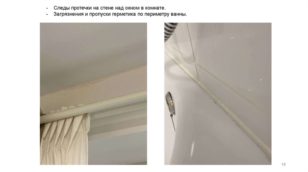 Загрязнения и пропуски герметика по периметру ванны.