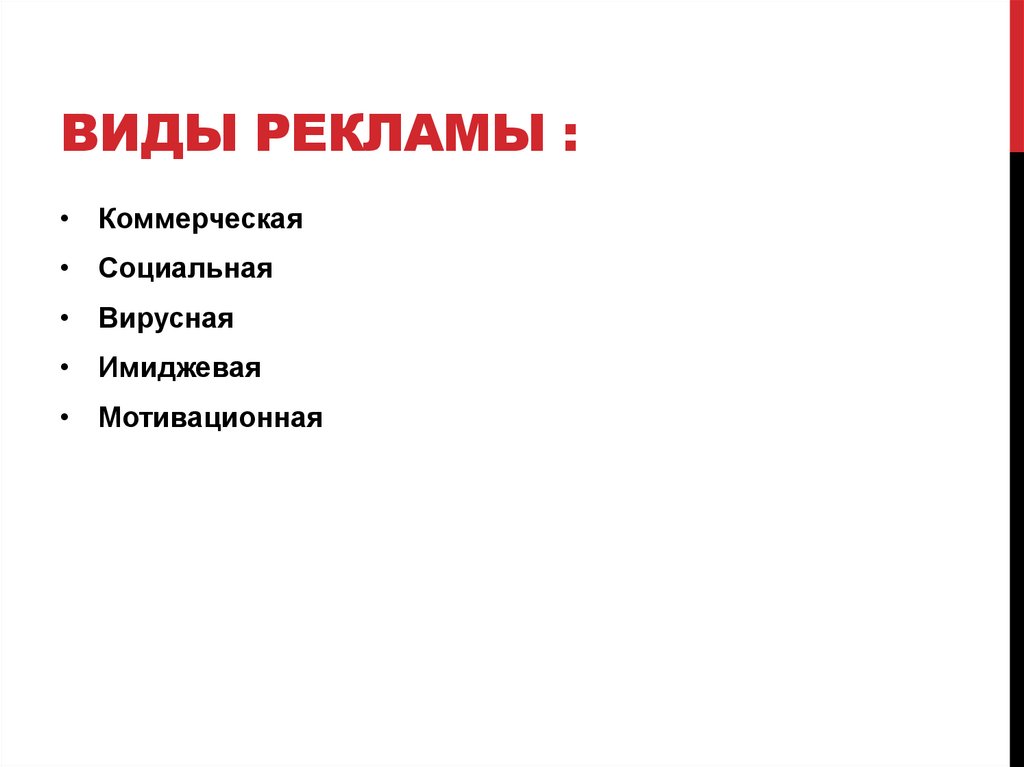 ВИДЫ РЕКЛАМЫ :• Коммерческая