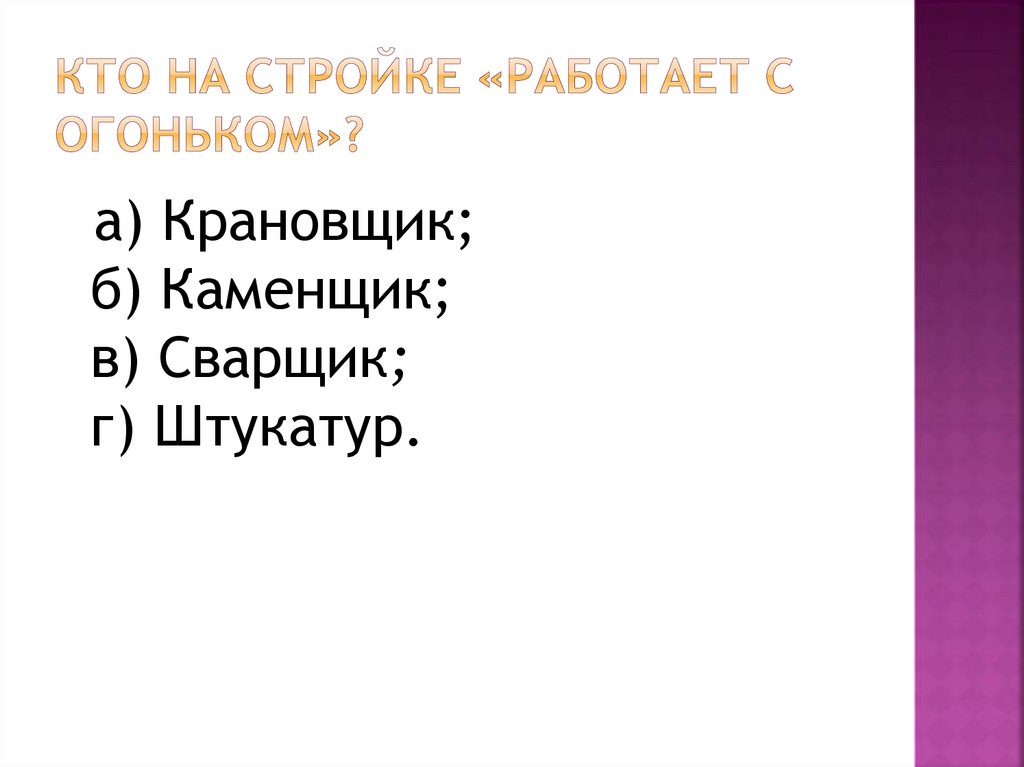 а) Крановщик;б) Каменщик;