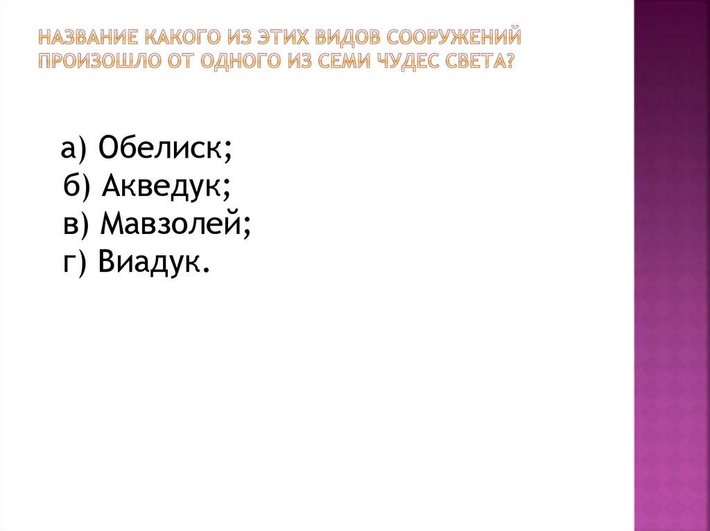 а) Обелиск;б) Акведук;