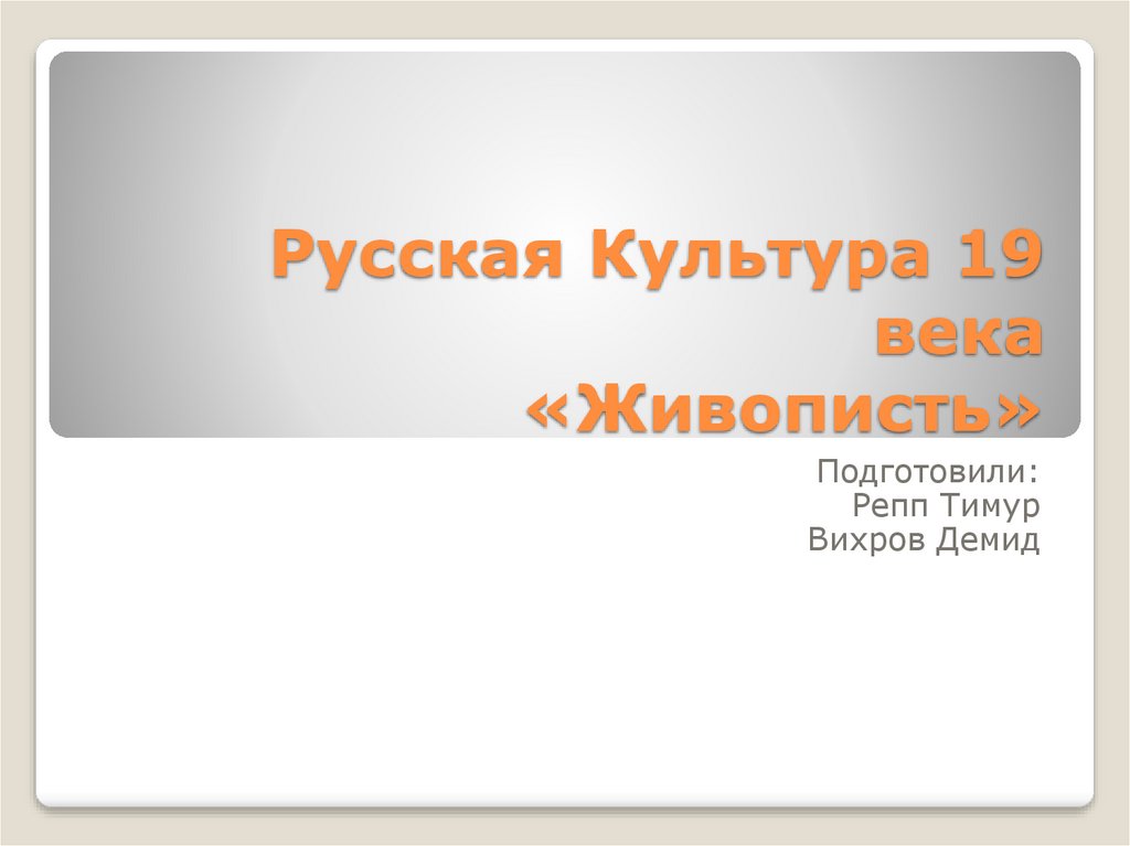 Русская Культура 19 века «Живописть»
