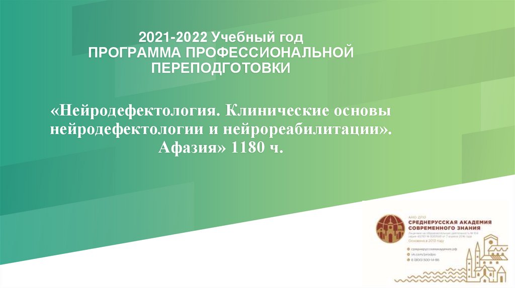 Программа профессиональной переподготовки «Нейродефектология. Клинические основы