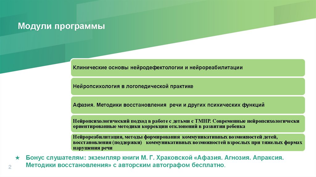 Модули программыКлинические основы нейродефектологии и нейрореабилитации