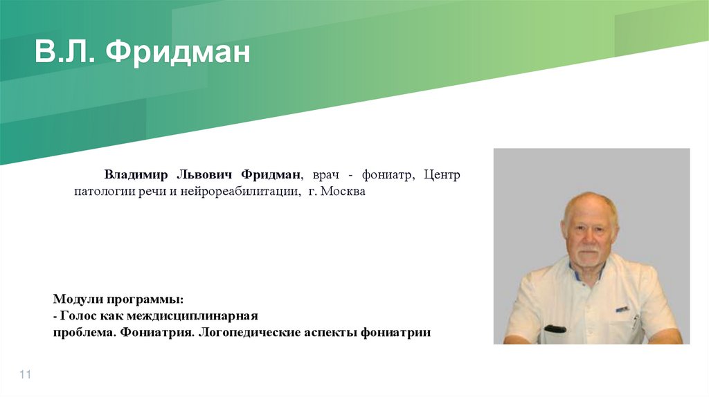 В.Л. ФридманВладимир Львович Фридман, врач - фониатр, Центр