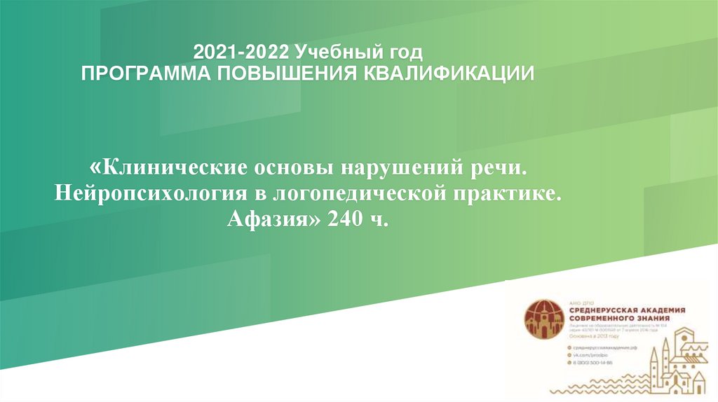 Программа повышения квалификации «Клинические основы нарушений речи. Нейропсихология