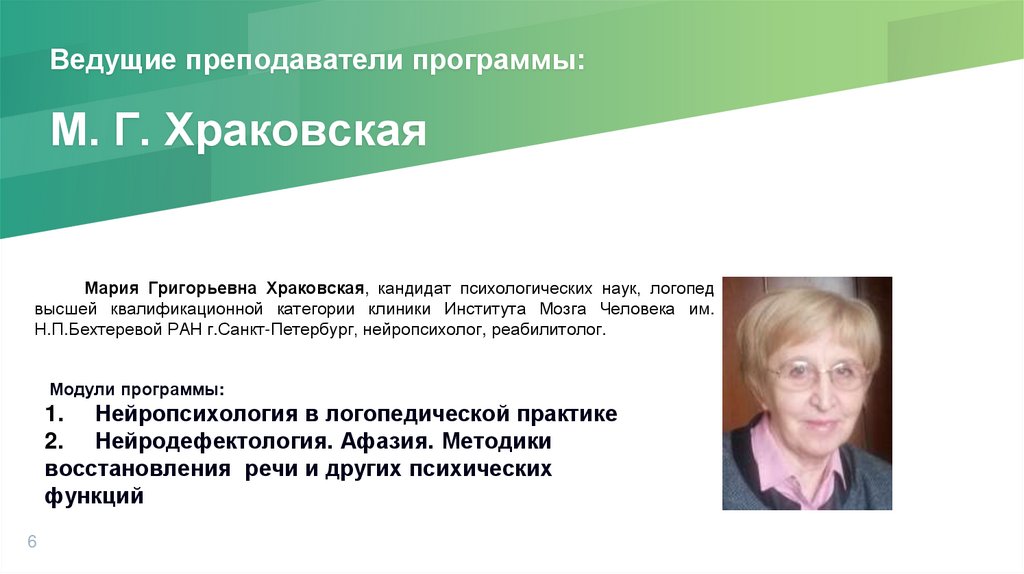 Ведущие преподаватели программы:М. Г. Храковская