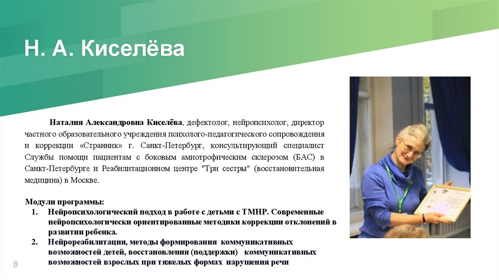 Н. А. КиселёваНаталия Александровна Киселёва, дефектолог, нейропсихолог, директор