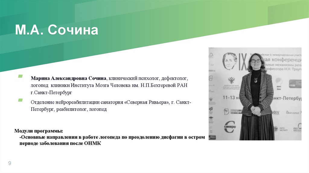 Н.П.Бехтеревой РАН г.Санкт-Петербург, нейропсихолог, реабилитолог.