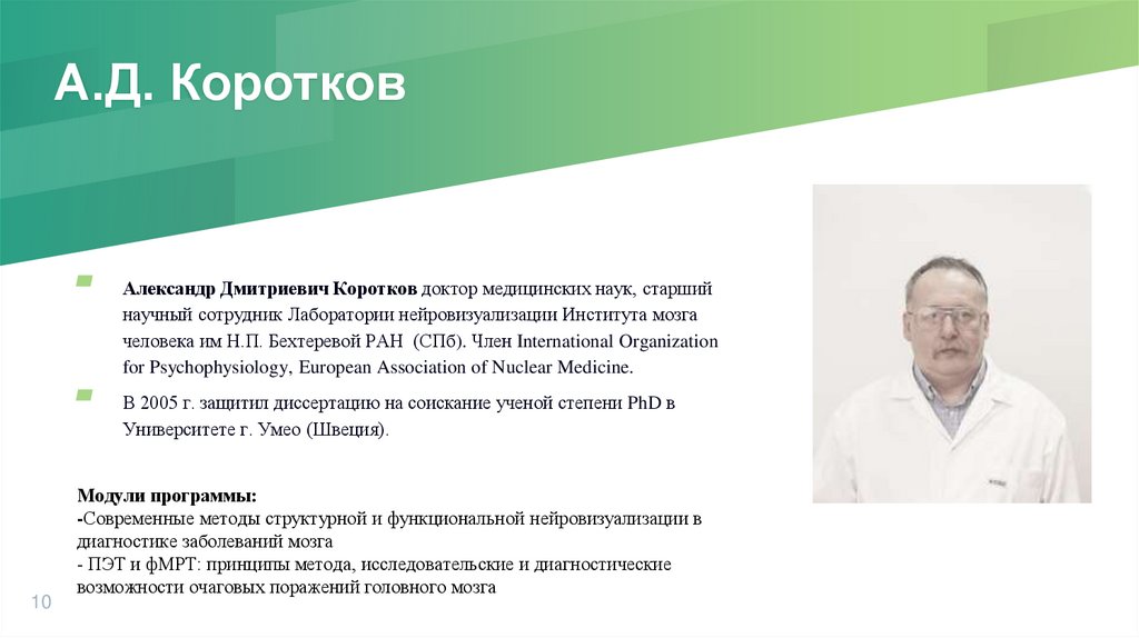 Александр Дмитриевич Коротков доктор медицинских наук, старший
