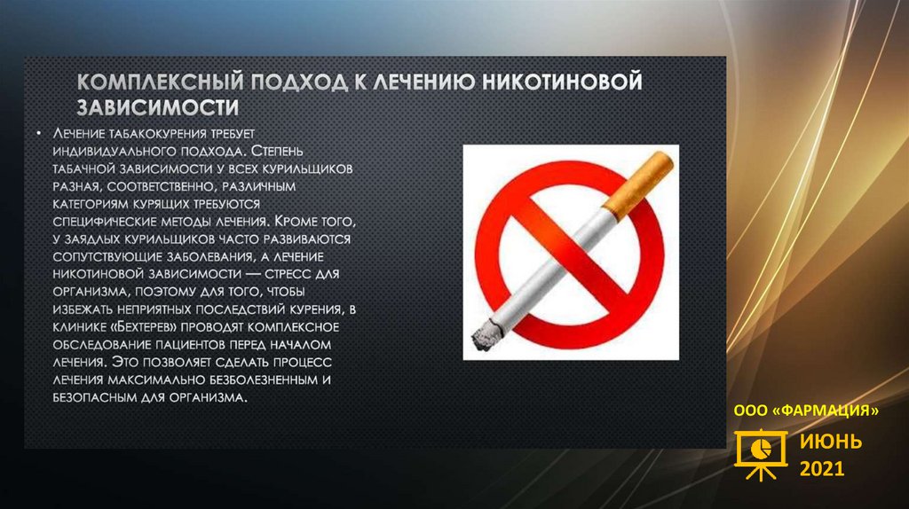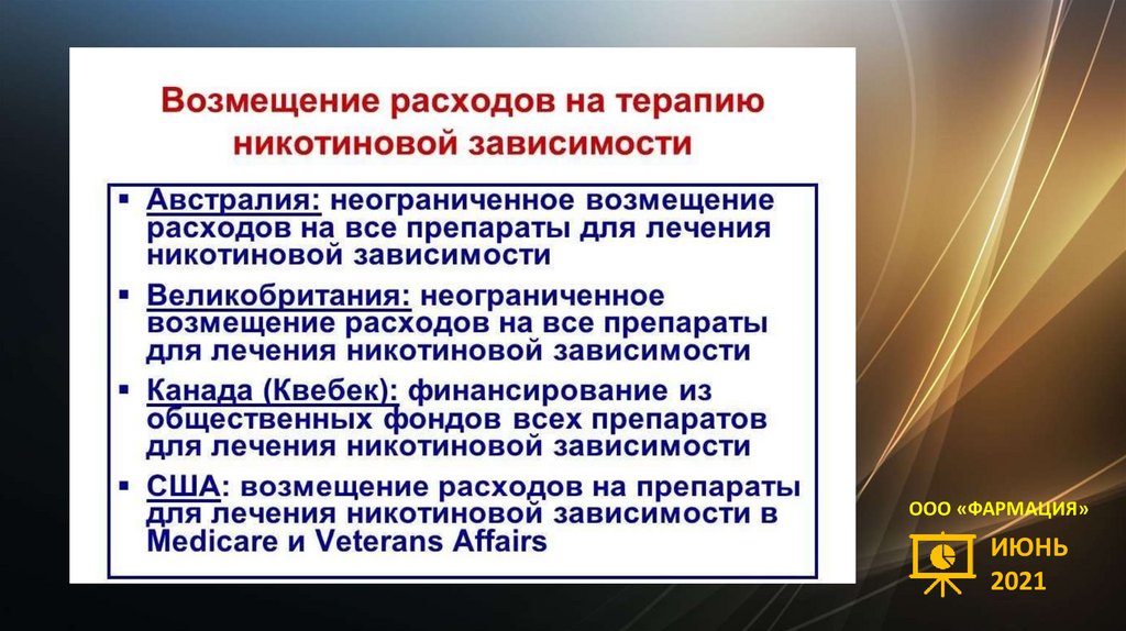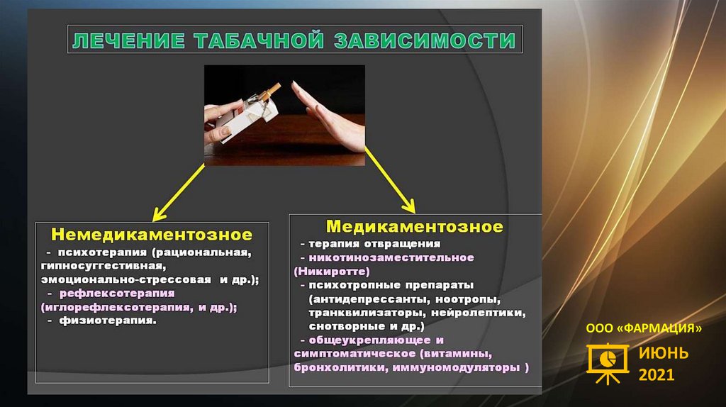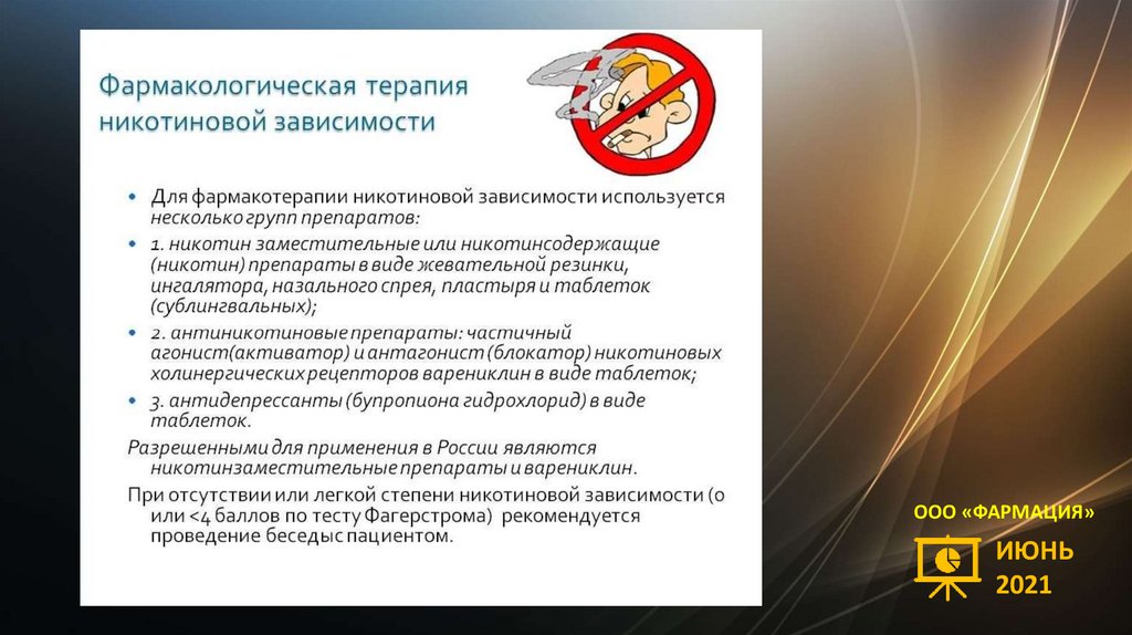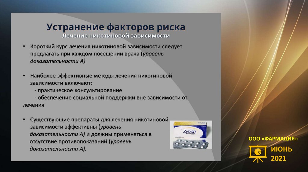 • Короткий курс лечения никотиновой зависимости следуетпредлагать при каждом посещении врача (уровень