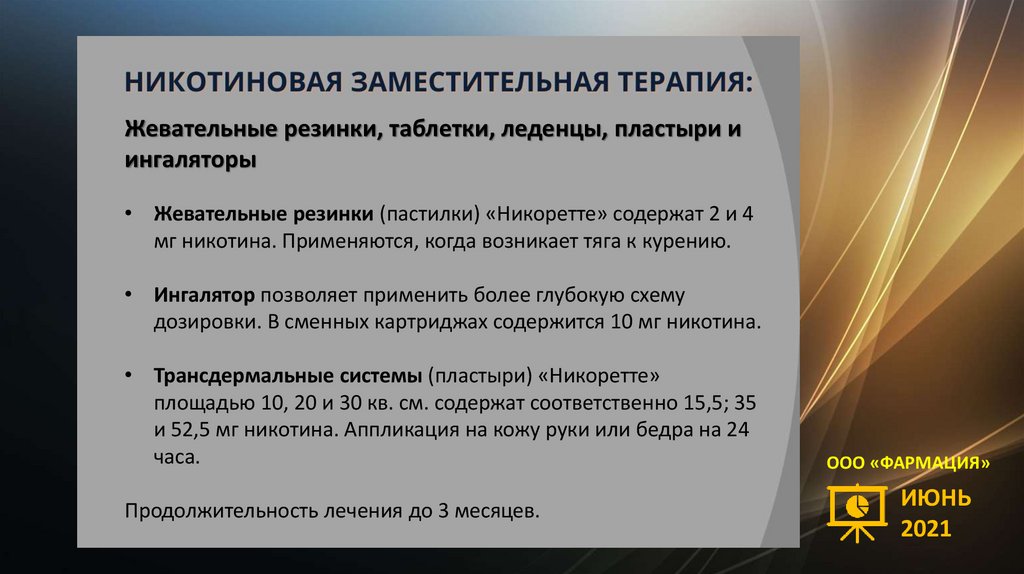• Жевательные резинки (пастилки) «Никоретте» содержат 2 и 4