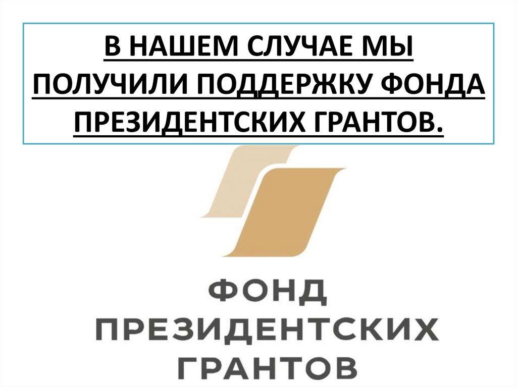 В НАШЕМ СЛУЧАЕ МЫПОЛУЧИЛИ ПОДДЕРЖКУ ФОНДА