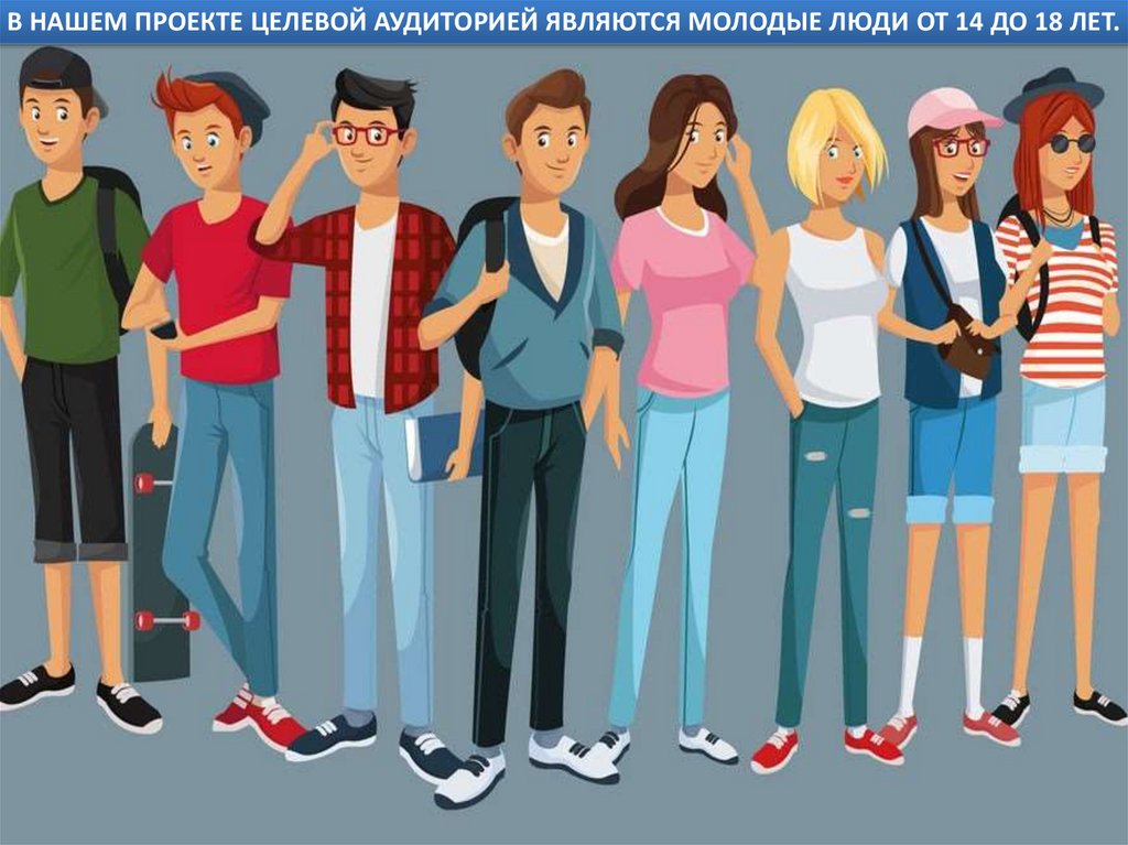 В НАШЕМ ПРОЕКТЕ ЦЕЛЕВОЙ АУДИТОРИЕЙ ЯВЛЯЮТСЯ МОЛОДЫЕ ЛЮДИ ОТ 14 ДО 18 ЛЕТ.4.