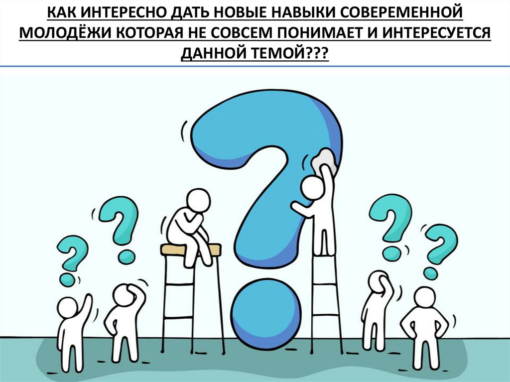 КАК ИНТЕРЕСНО ДАТЬ НОВЫЕ НАВЫКИ СОВЕРЕМЕННОЙМОЛОДЁЖИ КОТОРАЯ НЕ СОВСЕМ ПОНИМАЕТ И ИНТЕРЕСУЕТСЯ