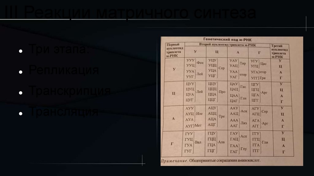 III Реакции матричного синтезаТри этапа: