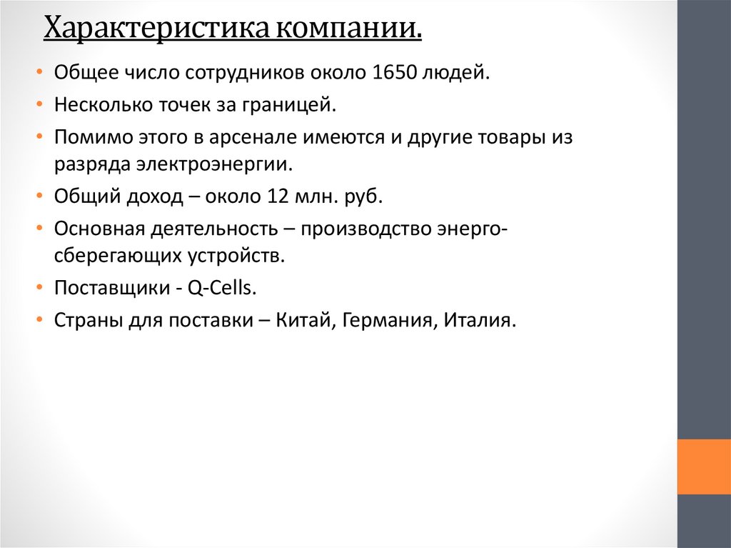 Характеристика компании.• Общее число сотрудников около 1650 людей.