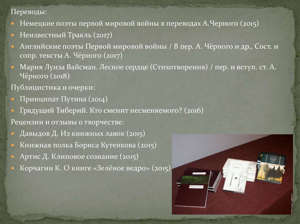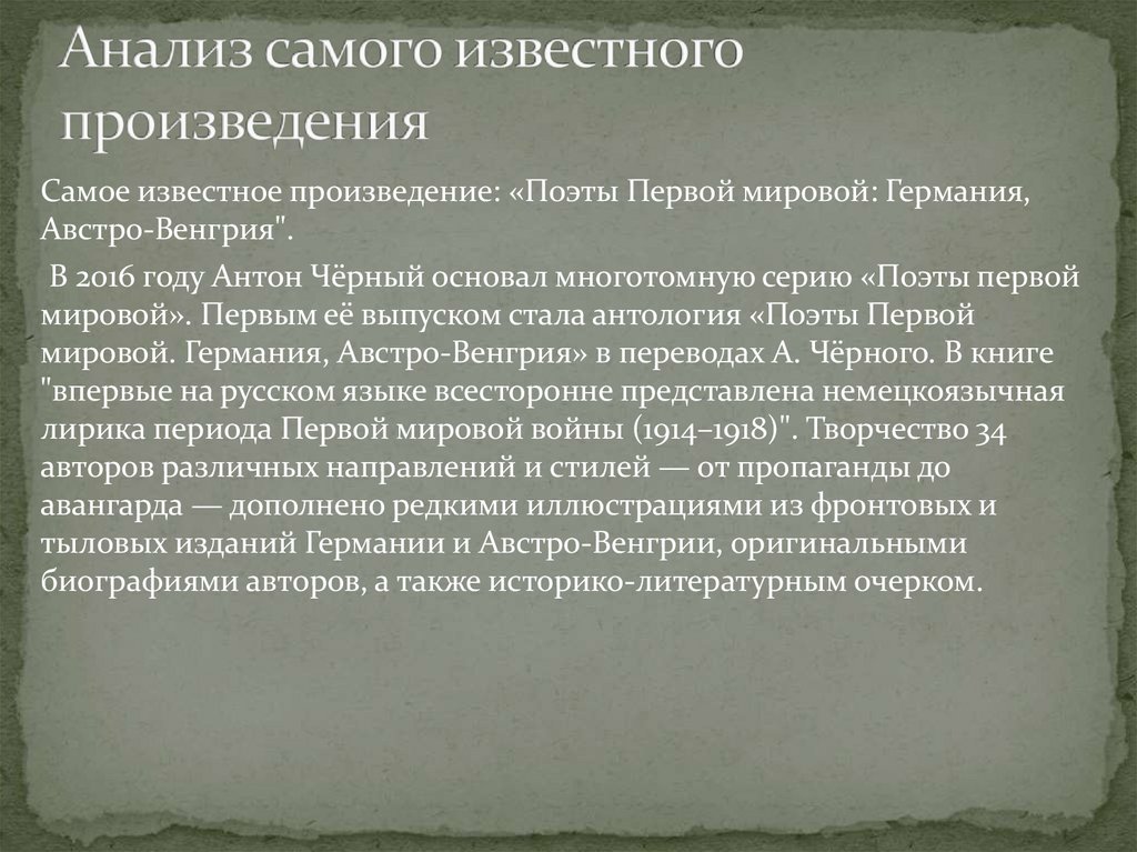 мировой. Германия, Австро-Венгрия» в переводах А. Чёрного. В книге