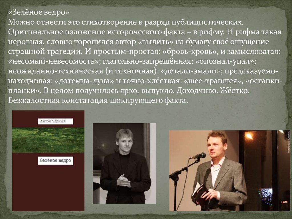 «Зелёное ведро»Можно отнести это стихотворение в разряд публицистических.