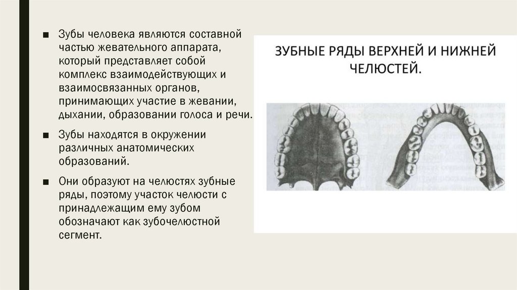 ■ Зубы человека являются составнойчастью жевательного аппарата,