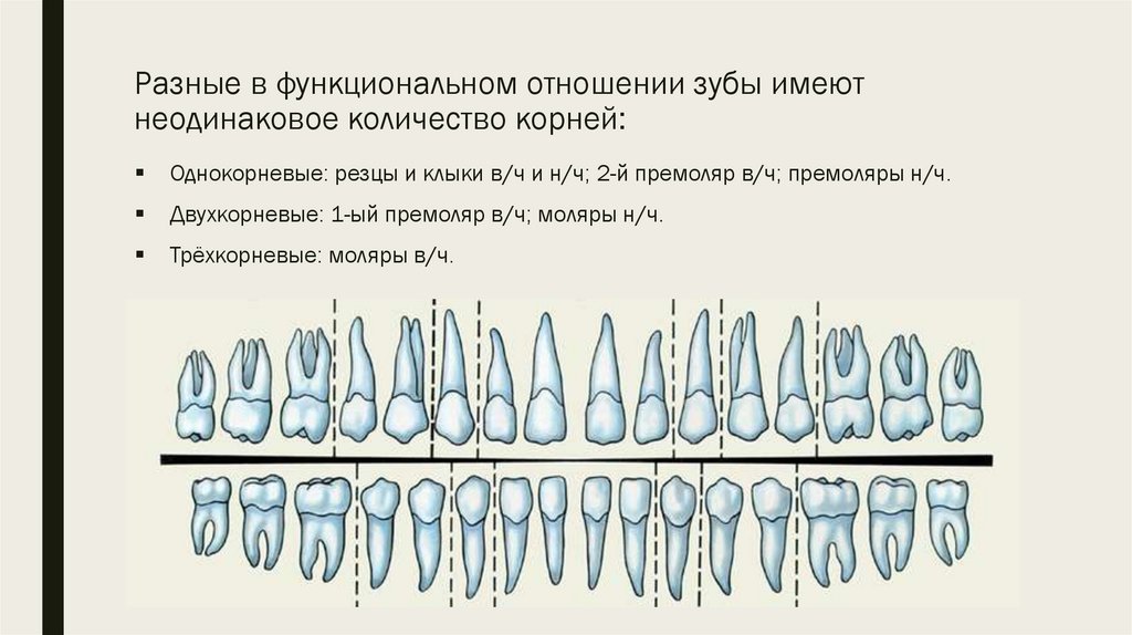 Разные в функциональном отношении зубы имеютнеодинаковое количество корней: