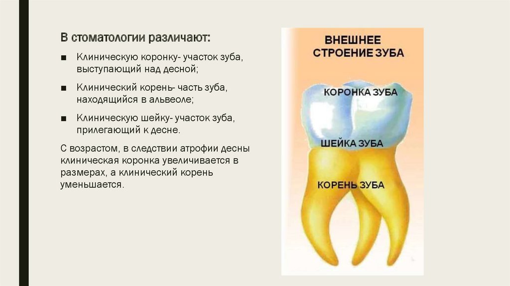 В стоматологии различают:■ Клиническую коронку- участок зуба,