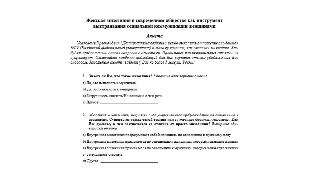 Федерального университета) к женской мизогинии.