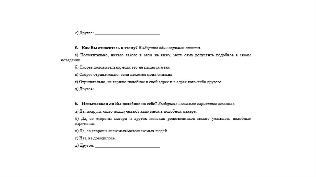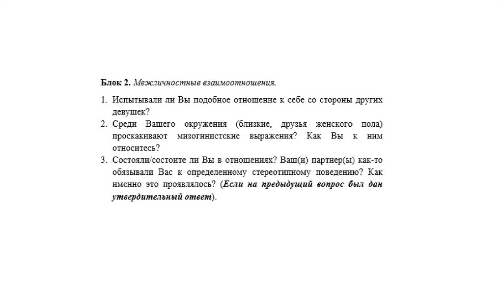 Выявить степень преобладания женской мизогинии в жизни студенток.