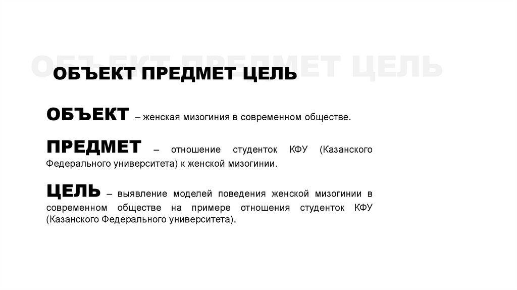 ОБЪЕКТ– женская мизогиния в современном обществе.