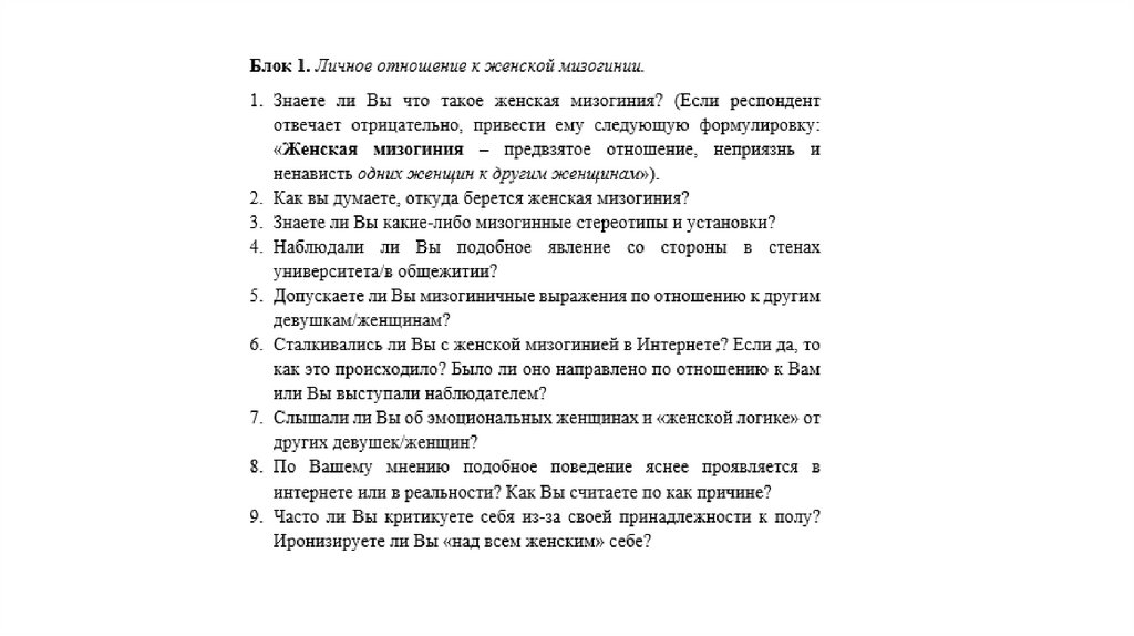Женская мизогиния в современном обществе как инструмент выстраивания социальной коммуникации женщинами. Исследовательский вопрос