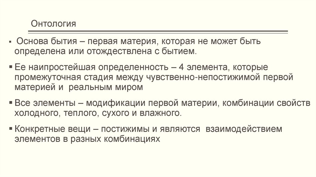 ОнтологияОснова бытия – первая материя, которая не может быть