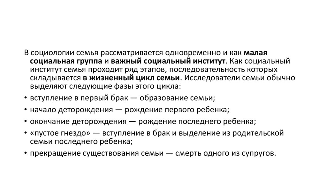 В социологии семья рассматривается одновременно и как малаясоциальная группа и важный социальный институт. Как социальный