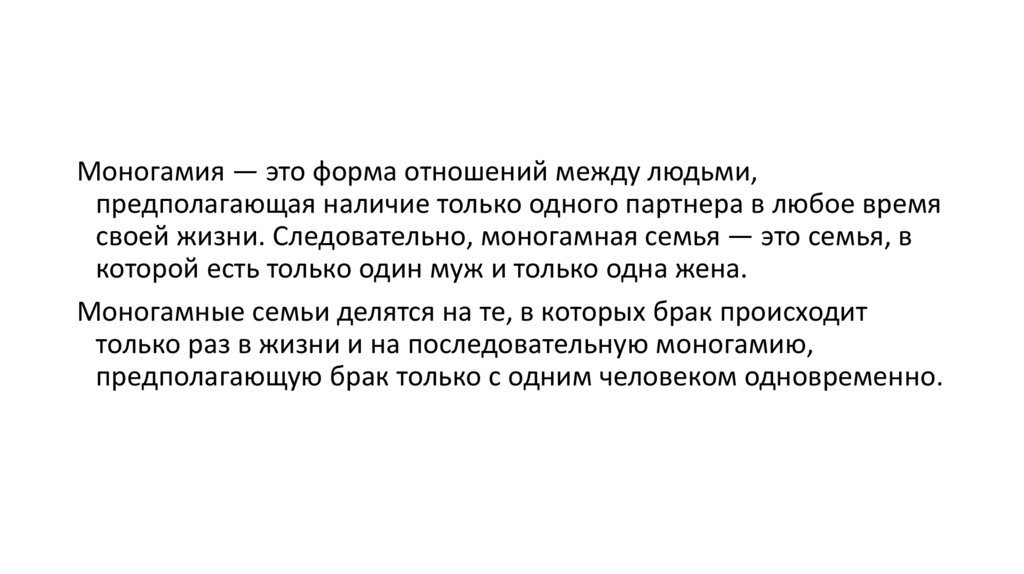 своей жизни. Следовательно, моногамная семья — это семья, в