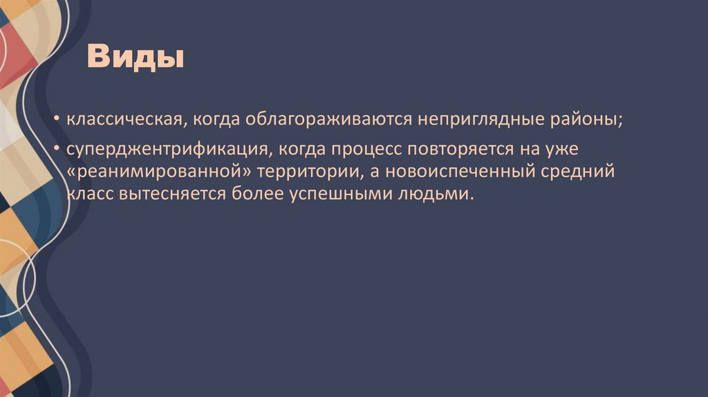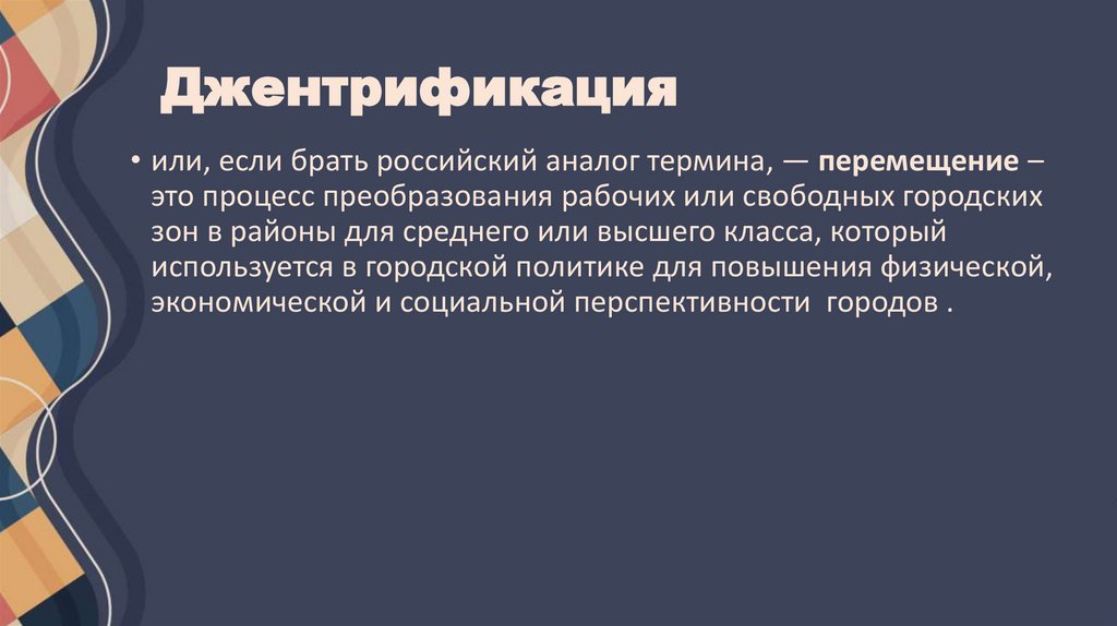 Джентрификация• или, если брать российский аналог термина, — перемещение –