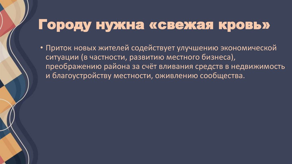Городу нужна «свежая кровь»• Приток новых жителей содействует улучшению экономической