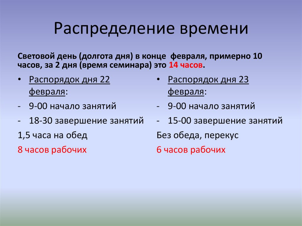 Распределение времениСветовой день (долгота дня) в конце февраля, примерно 10