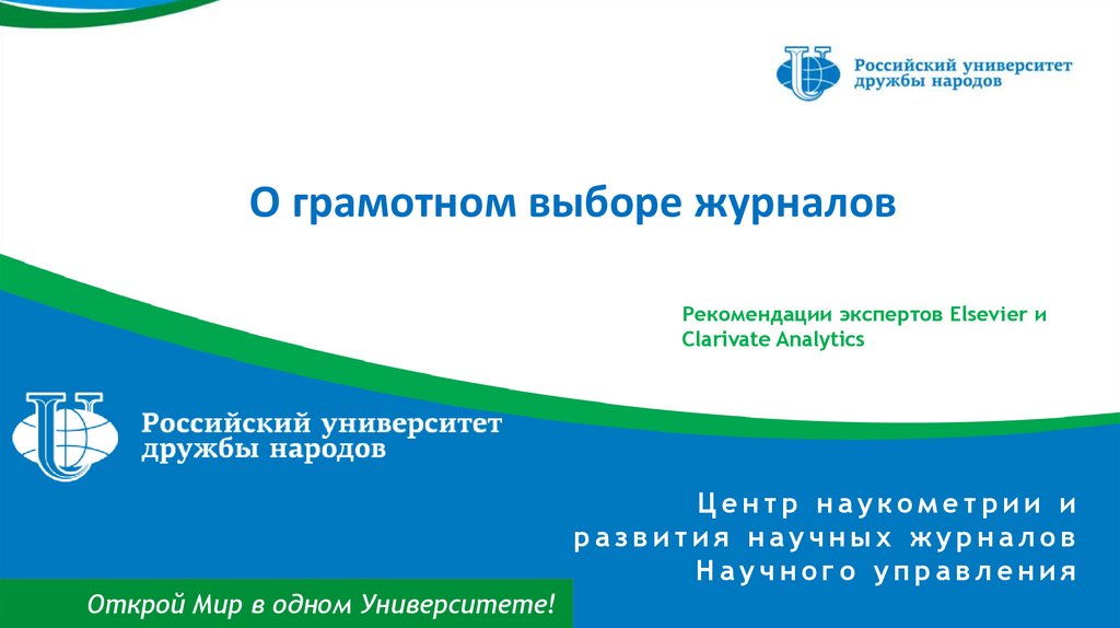О грамотном выборе журналовРекомендации экспертов Elsevier и