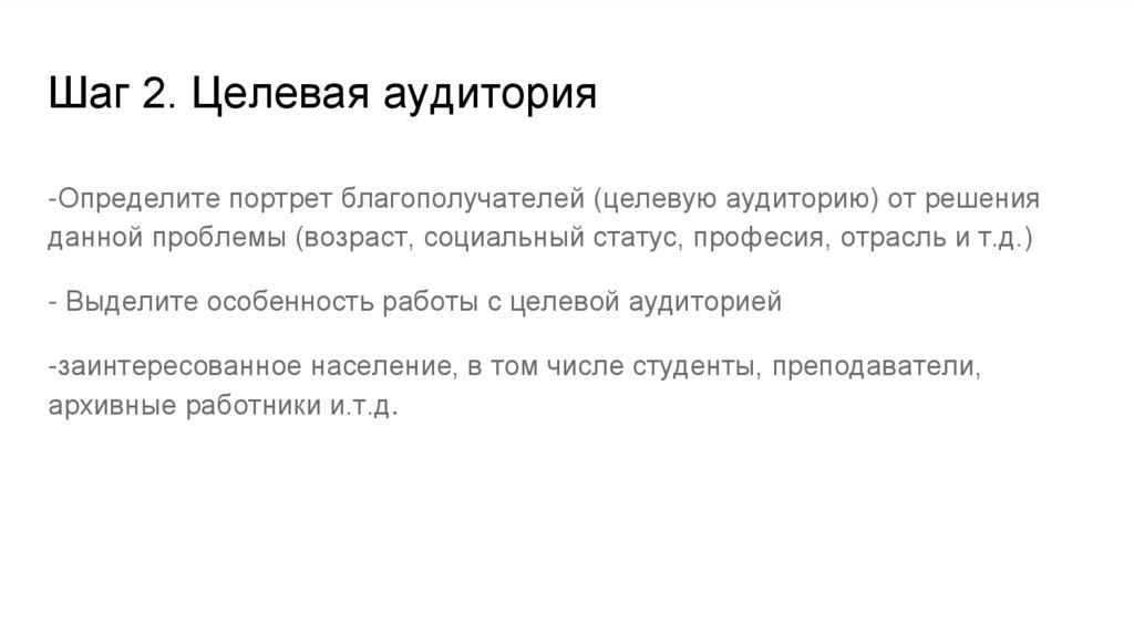 Шаг 2. Целевая аудитория-Определите портрет благополучателей (целевую аудиторию) от решения