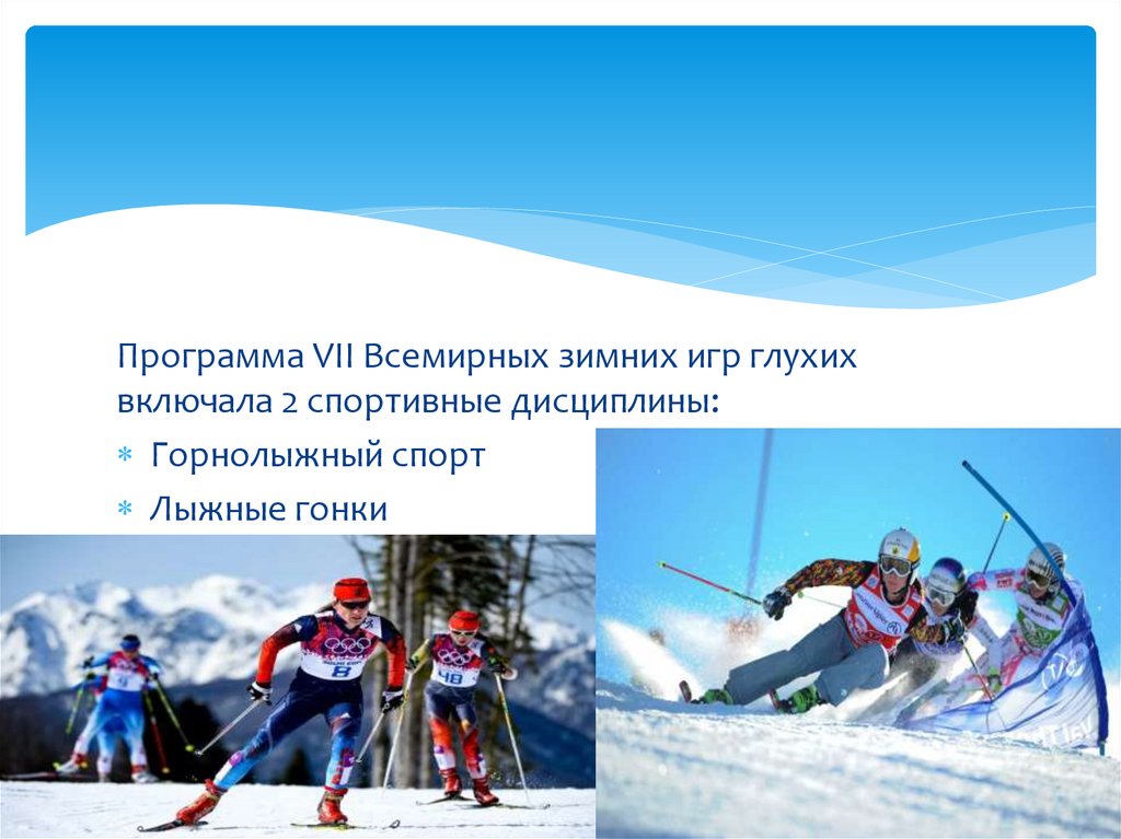 Программа VII Всемирных зимних игр глухихвключала 2 спортивные дисциплины: