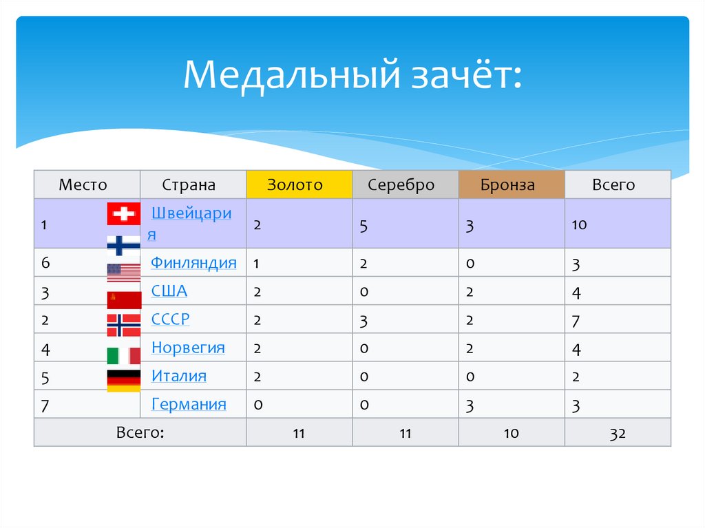 Медальный зачёт:Место
