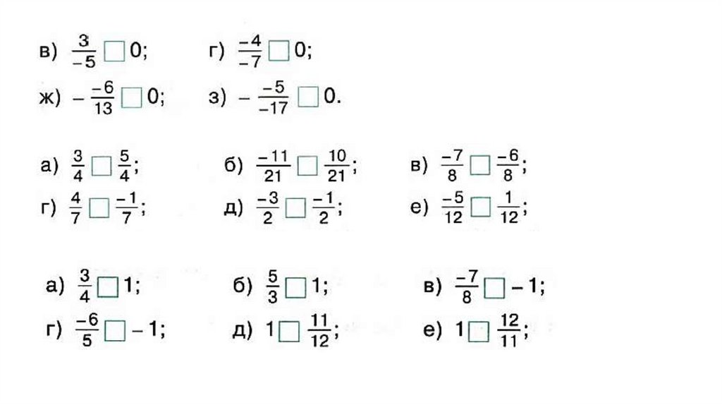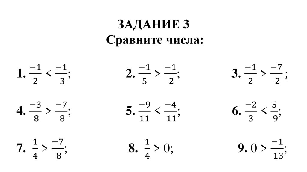 3. Любая положительная дробь больше отрицательной