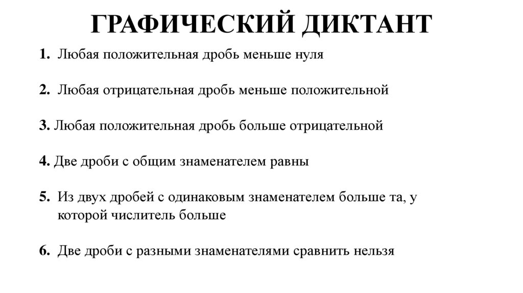 ГРАФИЧЕСКИЙ ДИКТАНТ1. Любая положительная дробь меньше нуля