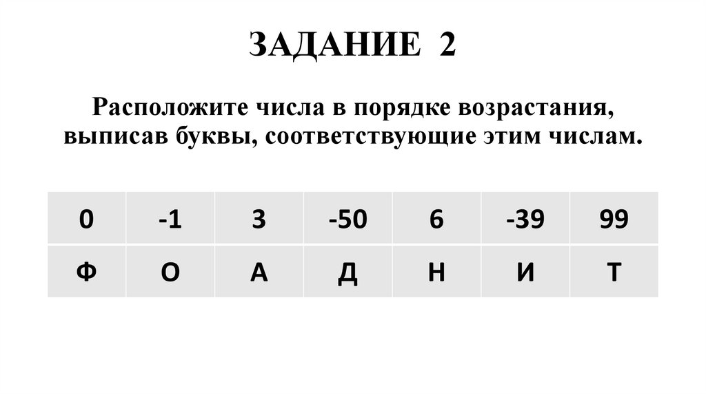ЗАДАНИЕ 2Расположите числа в порядке возрастания,