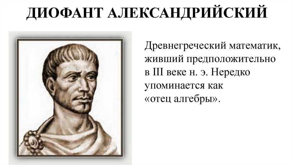 ДИОФАНТ АЛЕКСАНДРИЙСКИЙДревнегреческий математик,