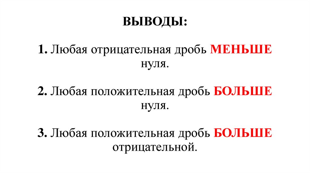 ВЫВОДЫ:1. Любая отрицательная дробь МЕНЬШЕ