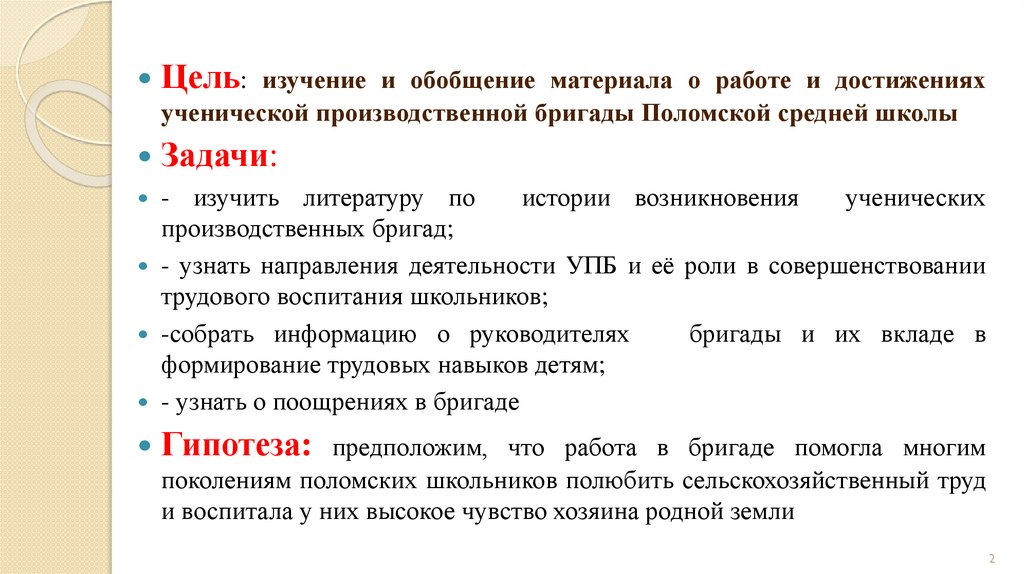 Организация производственной бригады вПоломской средней школе