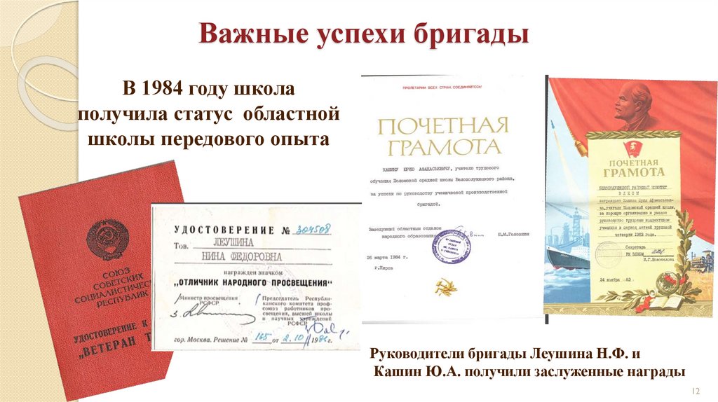 Важные успехи бригадыВ 1984 году школа